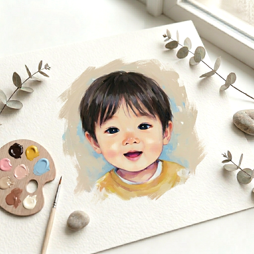 写真とはまた違う温かみで、家族の大切な記念日を彩ります。