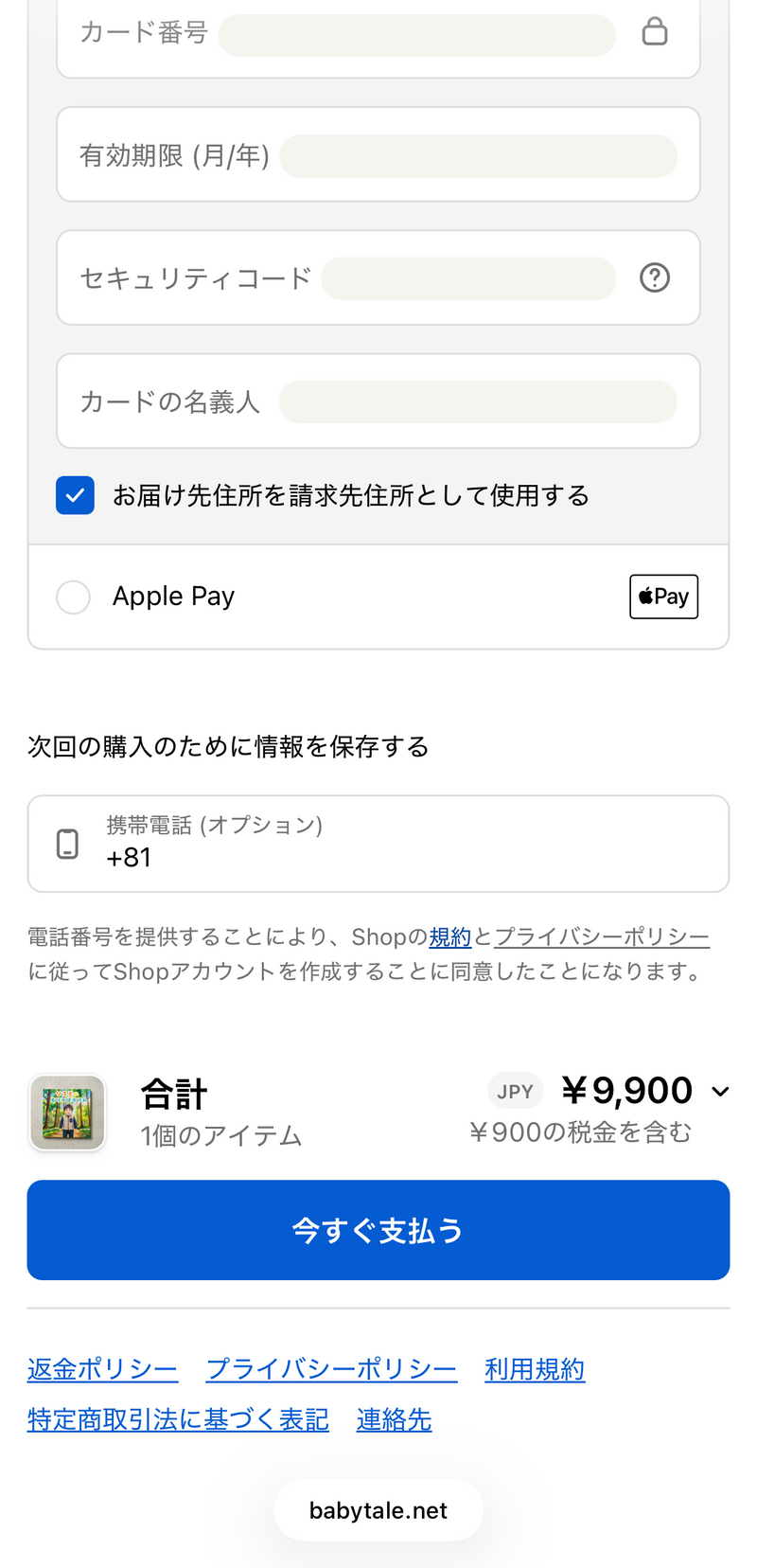 購入手続き画面で決済を完了してください。