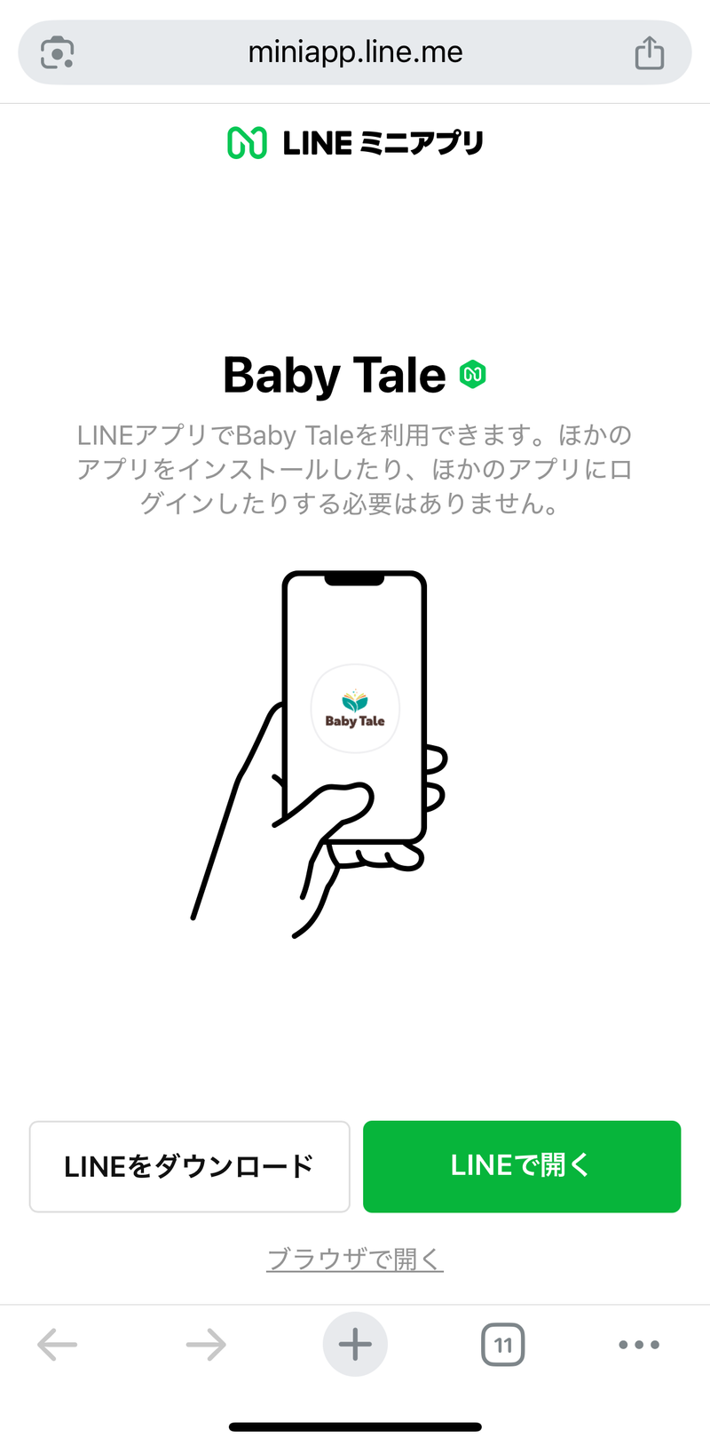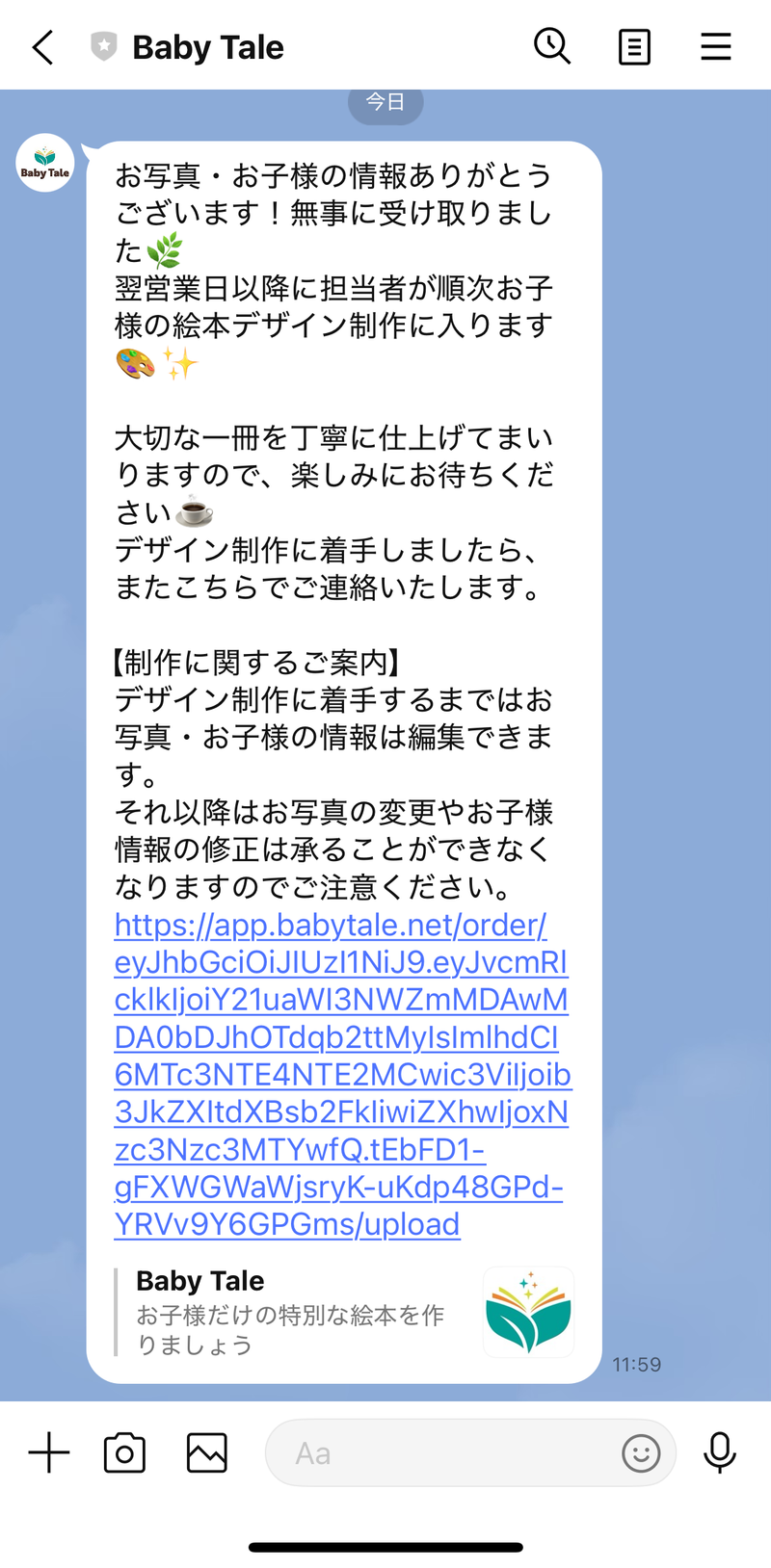 登録が完了すると、Baby TaleのLINEメッセージで登録完了の通知が届きます。